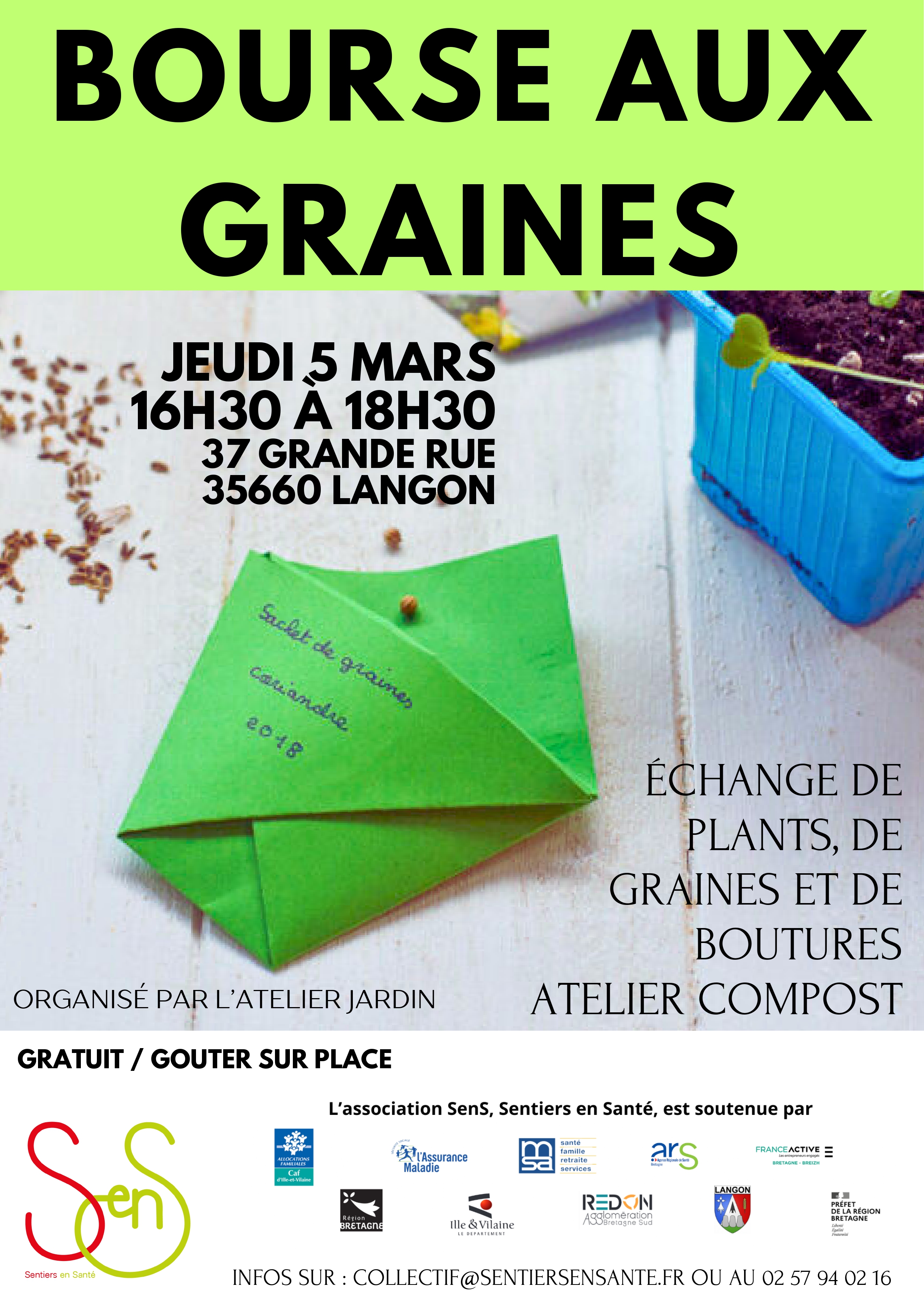 L’atelier jardin organise le 5 mars 2026 entre 16h30 et 18h30 une bourse aux graines : venez échanger vos graines, vos plants ou vos boutures. Un gouter sera offert et un atelier compost sera proposé. Animation gratuite.